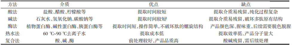 表1 鱼鳞鱼皮胶原蛋白肽的提取方法
