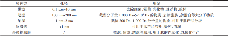 表2 分离膜的种类及用途