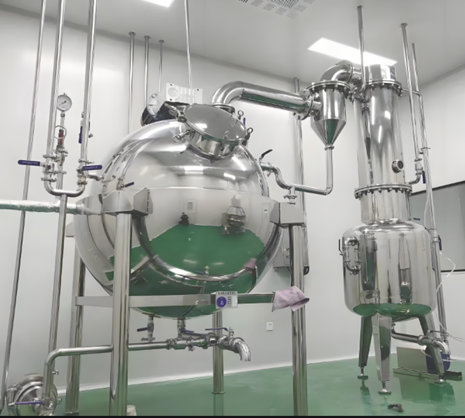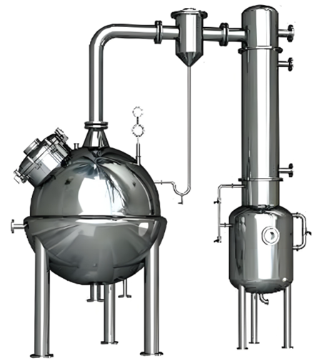 球形浓缩器主要由浓缩罐主体、冷凝器、汽液分离器、集液桶四个部分组成,可用于制药、食品、化工等行业对料液的浓缩、蒸馏及有机溶媒的回收工艺。采用减压浓缩,故浓缩时间短,且不会破坏热敏性物料的有效成分。本设备与物料接触部分均采用不锈钢制造,具有良好的耐腐蚀性能,经久耐用,并符合GMP标准。