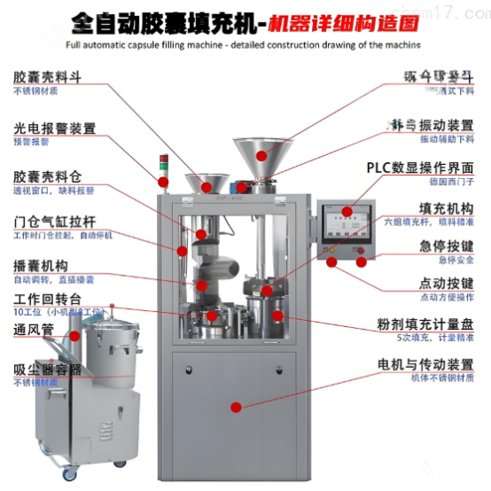 全自动胶囊机是一种集机、电、气为一体的设备,采用微电脑可编程控制器和触摸面板操作,配备电子自动计数装置。它能够自动完成胶囊的就位、分离、充填、锁紧等动作,减轻劳动强度,提高生产效率,符合制药卫生要求。全自动胶囊机适用于充填各种国产或进口胶囊,生产能力为每小时1-2万粒,电源总功率为3.1kw。